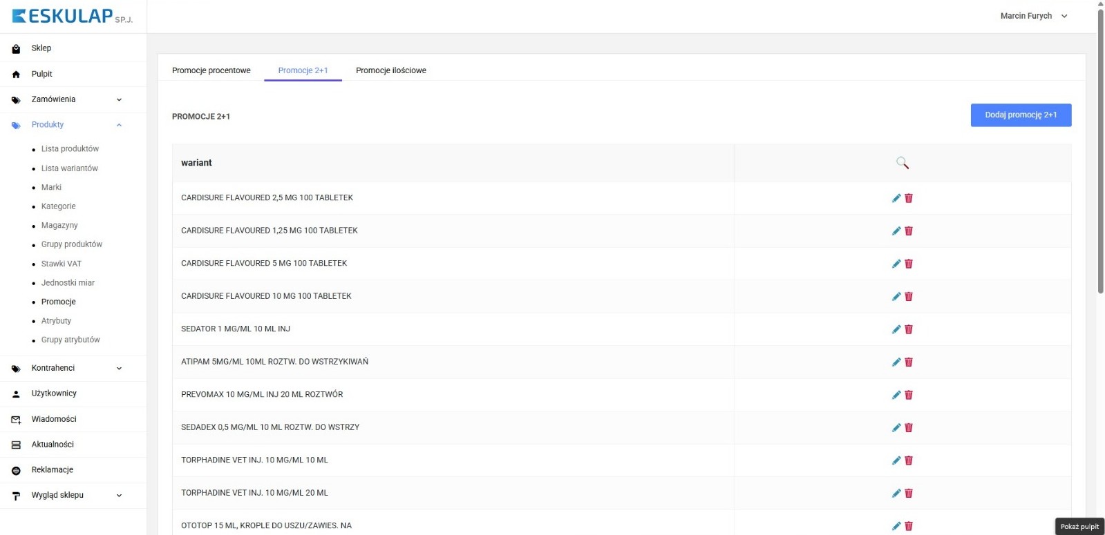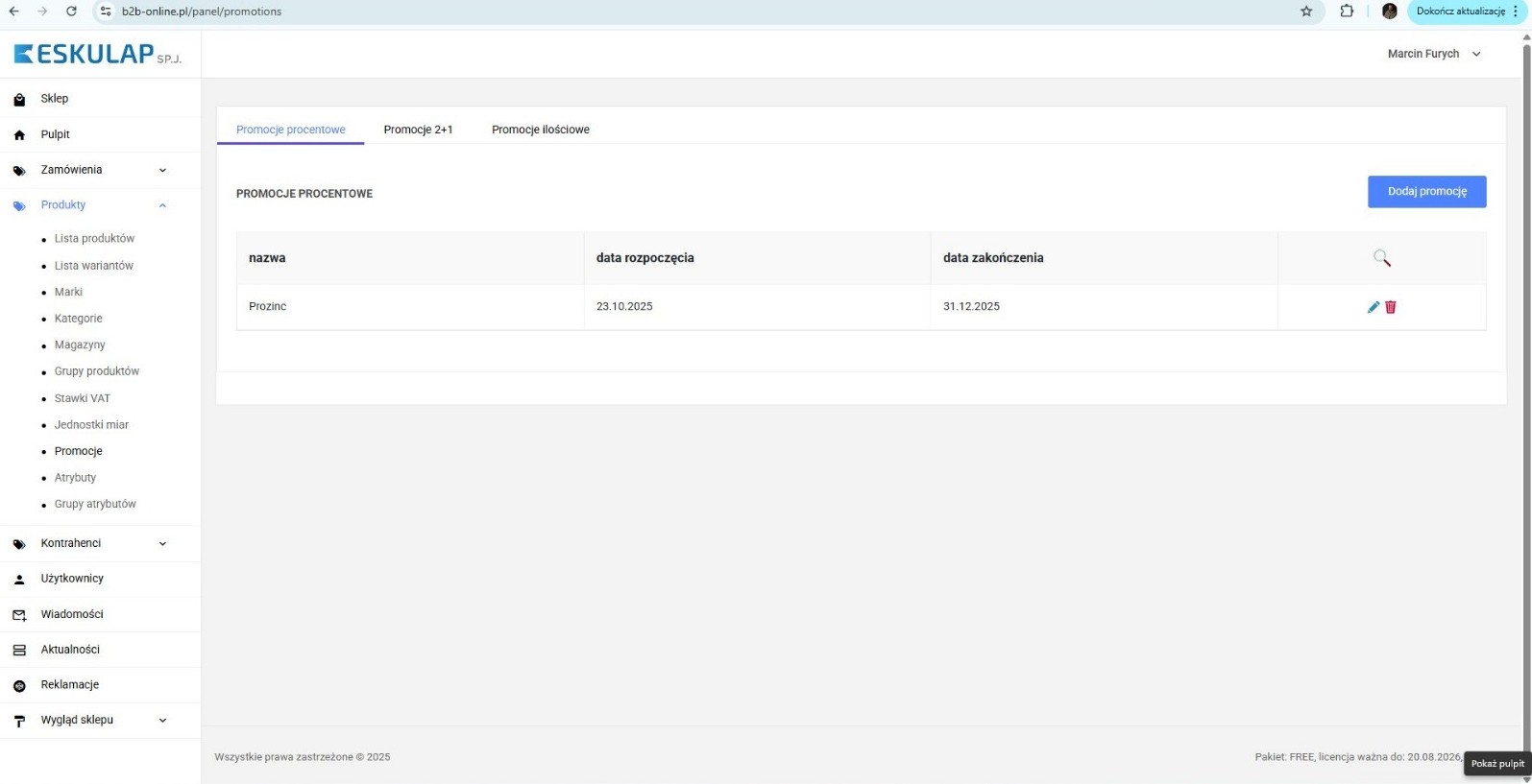 Wszystkie promocje tworzymy w zakładce Produkty 🡪 Promocje